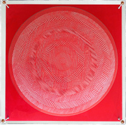 Interferenza lineare 1 del 1966 si compone di una serie di anelli concentrici serigrafati con una texture rigata che varia di 15 gradi ognuno.