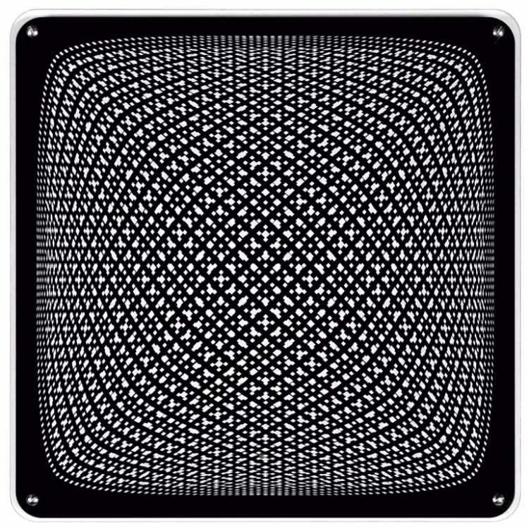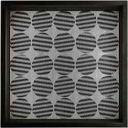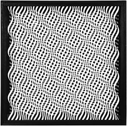 Interferenza lineare 7 e 7.7 fanno parte dello studio dell’autore sulle ricerche di MacKay, ossia sull’insieme di linee scintillanti che appaiono percorrere perpendicolarmente i raggi in un pattern radiale. L’illusione del movimento si ottiene ogni qualvolta una linea a spirale impegna un campo percettivo creando un vortice che dal fondo appare emergere alla superficie del piano di osservazione.