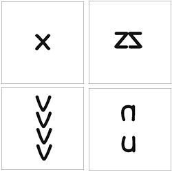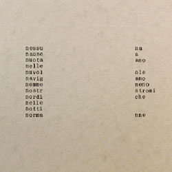 Dopo la serie di poesie che utilizza i curvometri e i normografi l’occasione per indagare sulla lettera “visiva” è fornita dagli stampini in metallo Stencil correntemente usati dagli imballatori per le casse di spedizione. |